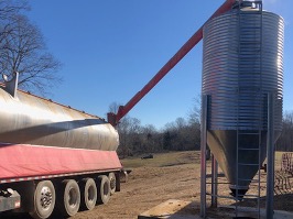 Example of an auger truck unloading into bulk bin (Source: Sioux Steel)
