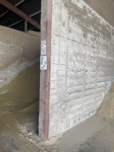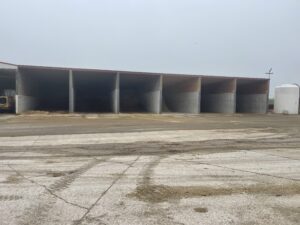 - Considerations: Make sure to leave enough space and paths so that feeding can continue during feed deliveries. It’s helpful to build with expansion in mind, if possible. Allowing space on either end of the row of bays will allow for more or different ingredients to be brought to the dairy. Sizing the bays to the relative usage of the ingredient will allow for inventories to be used timely. Some bays might be too large for some ingredients on farms, so having variable sized bays (12 and 24 tons, 15 and 30 tons) can help in managing ingredients with different inclusivity in the diet. Having deeper bays does allow for lower shrink. Also, placing steel on the front of bays may help to prevent damage. Recessing the steel corners relative to the concrete will limit the equipment catching the steel so that it doesn’t peel off and will last longer.