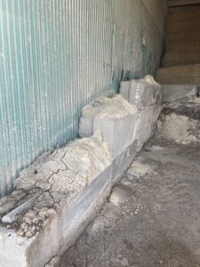 - Walls should be at least 16’ (4.9 m) tall concrete or at least the height of the building walls. This is especially important at the back of the bay to prevent the loader pushing against the steel siding of the building. Often, plywood can be used to extend the walls higher.