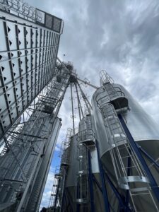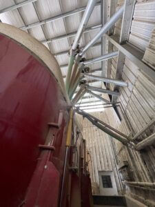 Upward view of grain bin setup