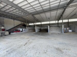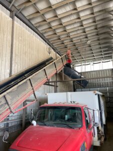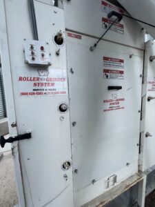 The farm has an IFA roller grinder system. This system is more costly than a hammer mill and costs around $40,000. The advantage of this system is that it produces an excellent particle size, typically less than 500 microns and generally with less deviation. There is also more throughput than a hammer mill, at processing speeds of 8 tons/hr. Roller grinders can run rollers at variable speeds versus a roller mill where rollers run at the same speed. Overall, it produces a high quality and consistent product.
