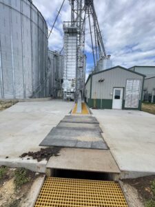 In addition to the bin setup, the farm has a drive-over unloading pit that is augured to bins. This allows for delivery with no disruption to the feed center. Corn is dried and stored on site and can then be directed to the roller grinder to be processed and added to bins as needed through legs.