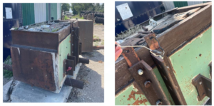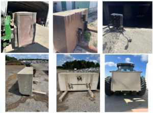 Below are some examples of custom three-point weights. The top two pictures show a custom weight that is wired with lights since the box will likely block some of the tractor mounted lights, which are extremely important for safety when backing up.