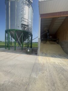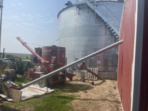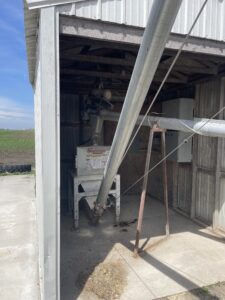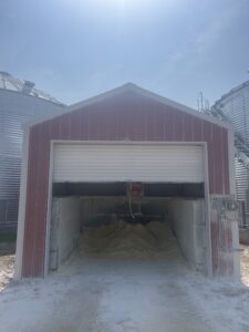 Another handling option is to use a grain auger to transfer corn to the storage unit. Grain augers are a tried-and-true way of getting corn from the field and into the bin. There are many brands and options on the market that can fit any operation’s needs. They will require a power source to rotate the auger. Either a tractor with PTO or a mounted electric motor are the most common power sources. Grain augers create flexibility of where you want to place your grain since they are very easy to move. Most times, they are temporarily set up so that at the end of the season you can clean them and store them out of the way. There are greater safety considerations to account for when using these because the PTO shaft is usually around the unloading work area, so operators need to be mindful of this, and the throughput of a grain auger will usually be less than a dump pit/grain leg setup, so overall efficiency is lower.