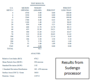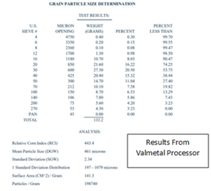 The report from the Valmetal hammer mill demonstrates that it has been effective in on-farm grinding. Overall, the micron size in this sample is adequate, along with the standard deviation of micron size. Other samples have also indicated that the mill is doing well over time.