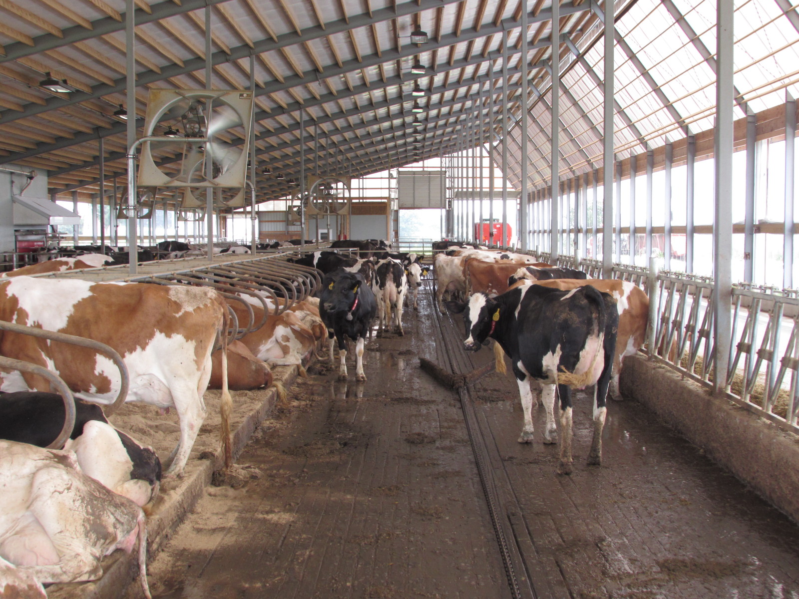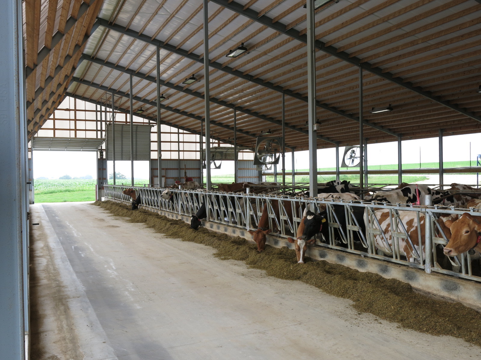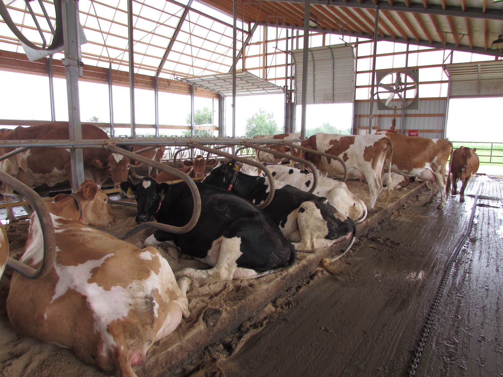 - Increased milk production by ~10 lbs (4.5 kg) due to improved cow comfort from old freestall barn and increased milking frequency. Herd average ~80 lbs (36.3 kg) of milk per cow per day over the past year; Holsteins average ~90 lbs (40.8 kg).