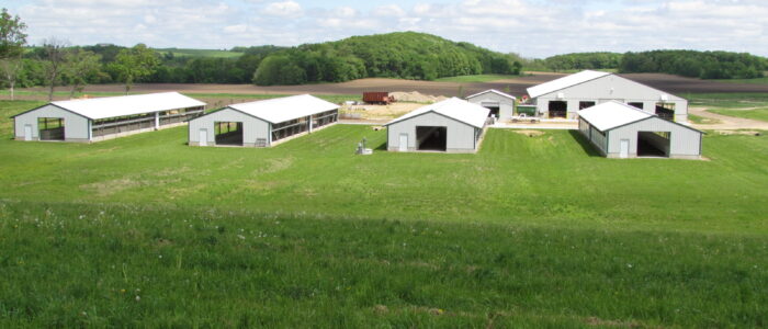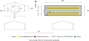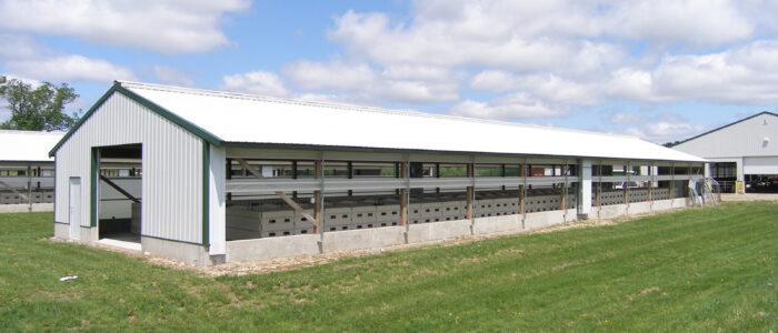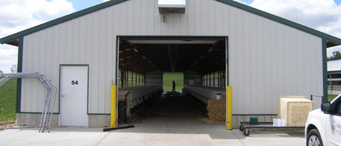 - Four 136 ft x 36 ft (41.5 m x 11 m) barns with 60 individual calf pens in each barn in two rows.