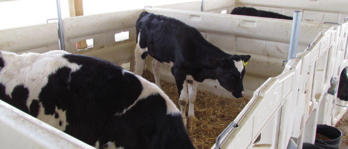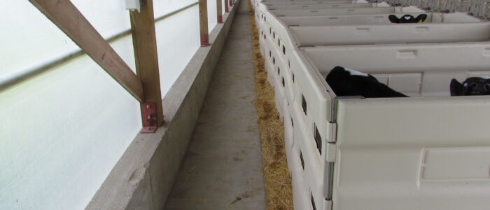 - Deep straw bedding and calf jackets are used in winter; wood shavings are used in summer.