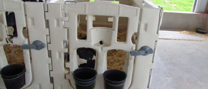 - Individual calf pens can be combined into pairs after weaning to introduce individuals to group housing.
