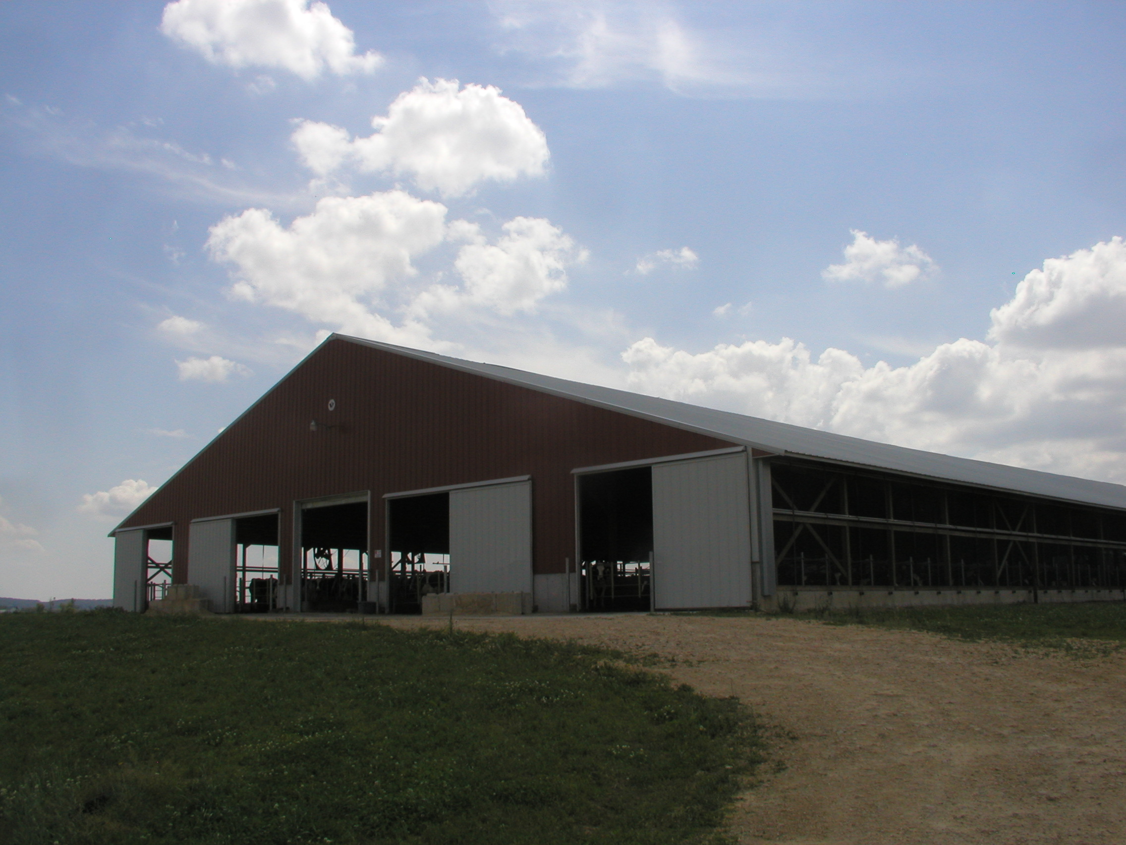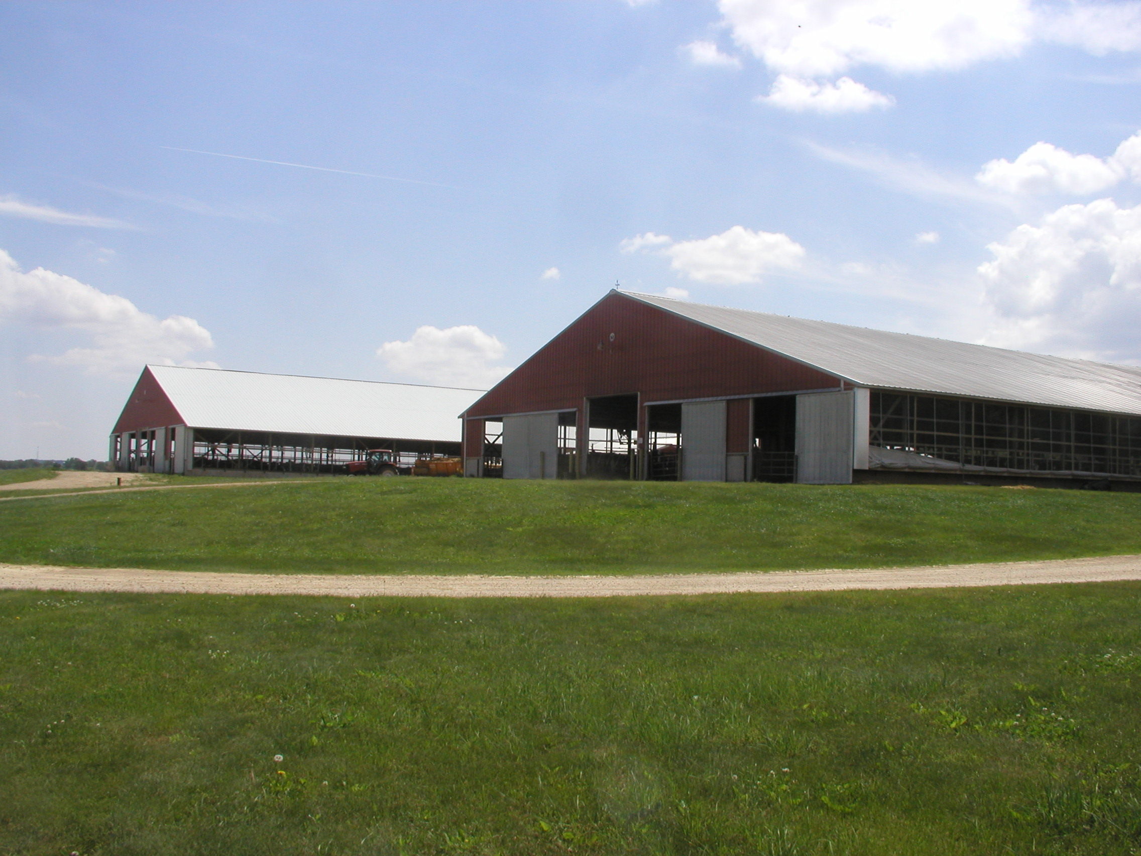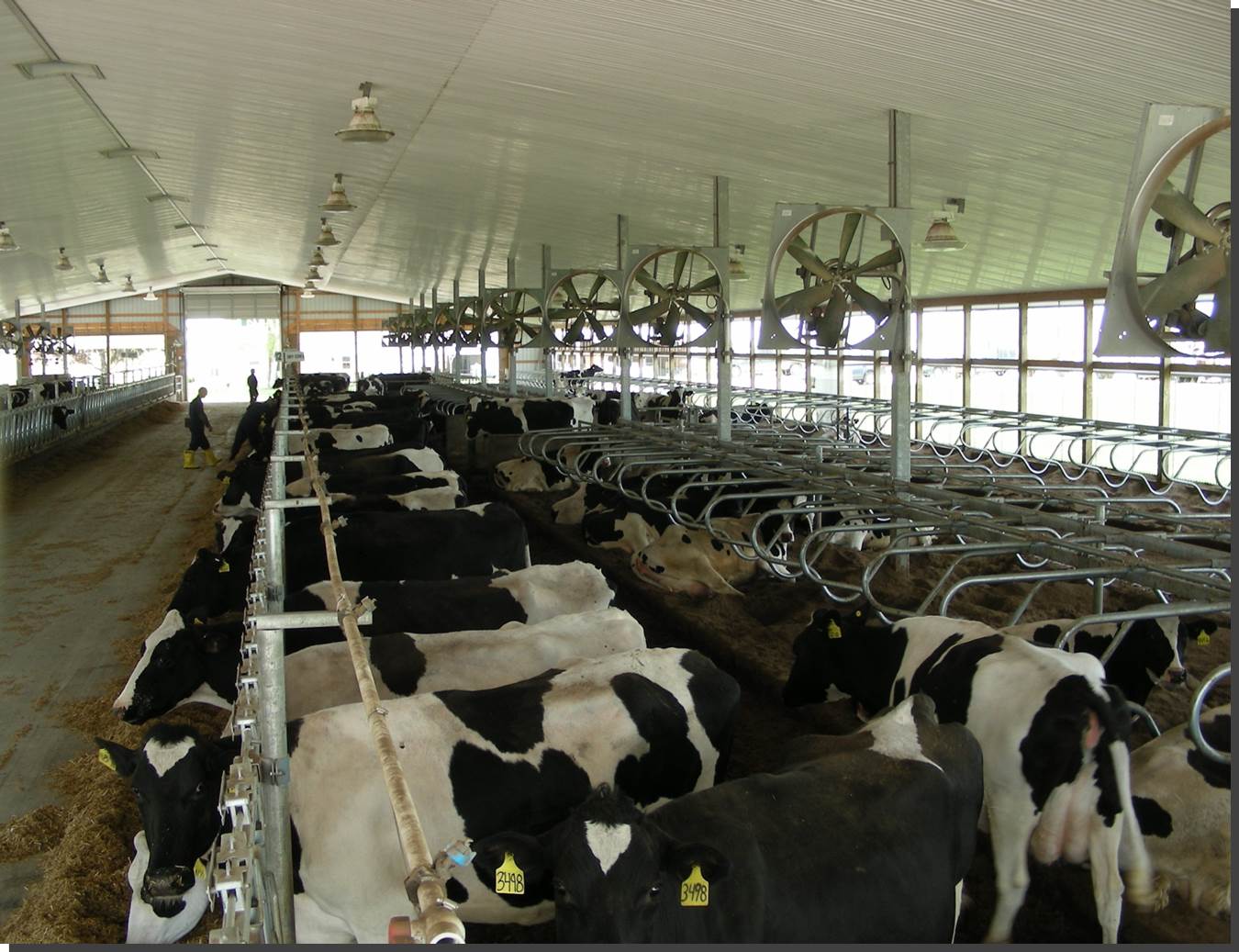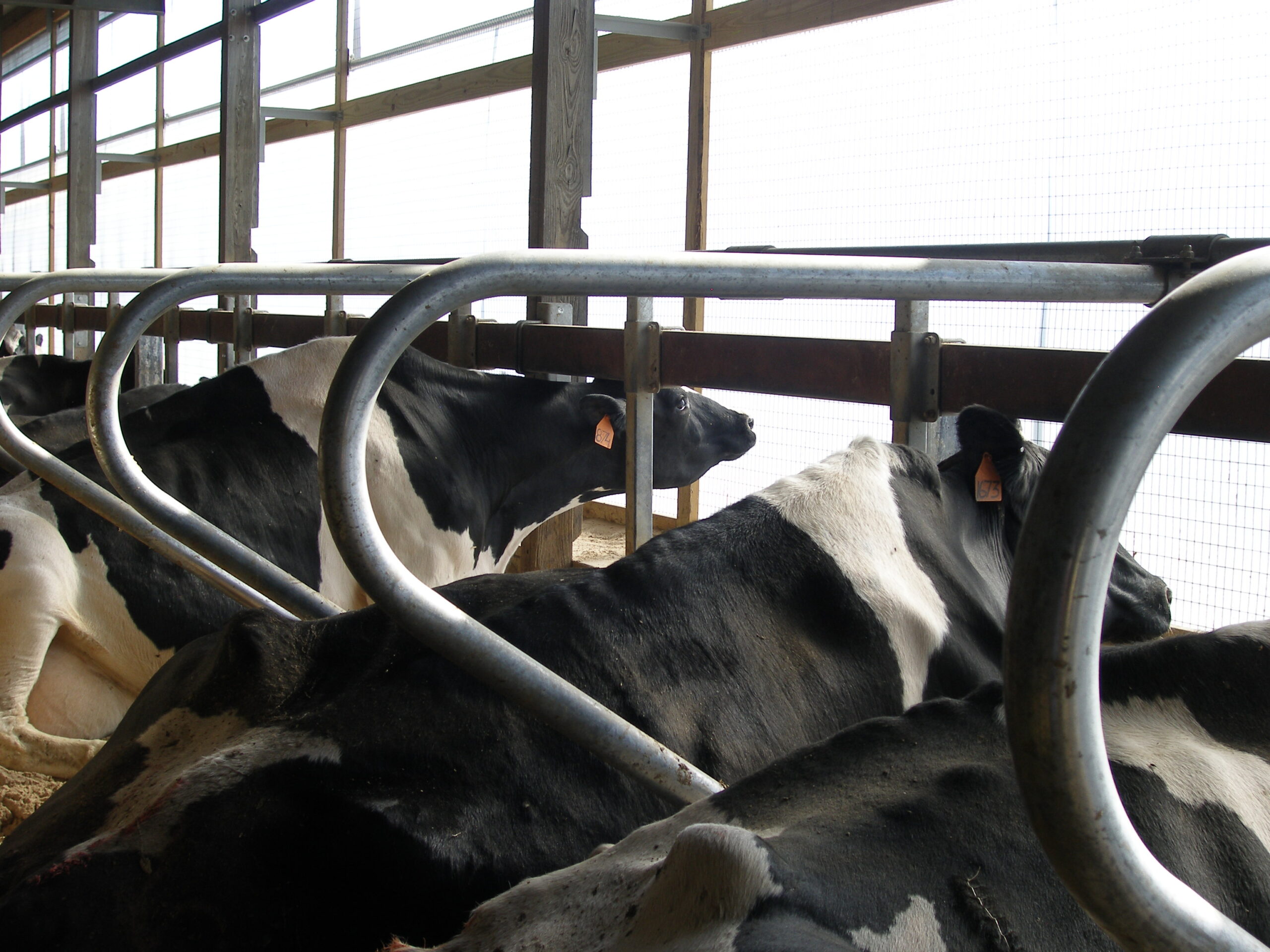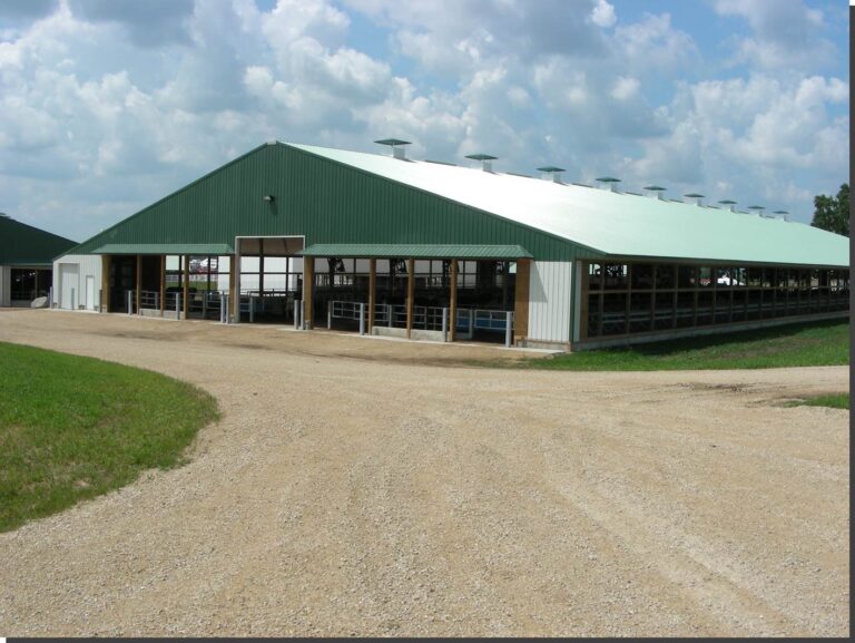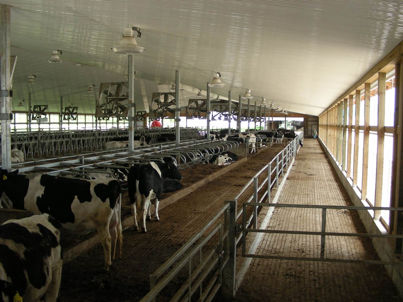Expanded new transition cow barn housing sick cows, far dry cows and prefresh mature cows and heifers in separate groups and a hoof-trimming area. Design constrained by limited footprint but optimized for bunk access for prefresh groups. Just in time calving with a drovers lane connecting 2-row head the head layout, manure solid bedded freestall pens. 3-row far dry and sick pens.