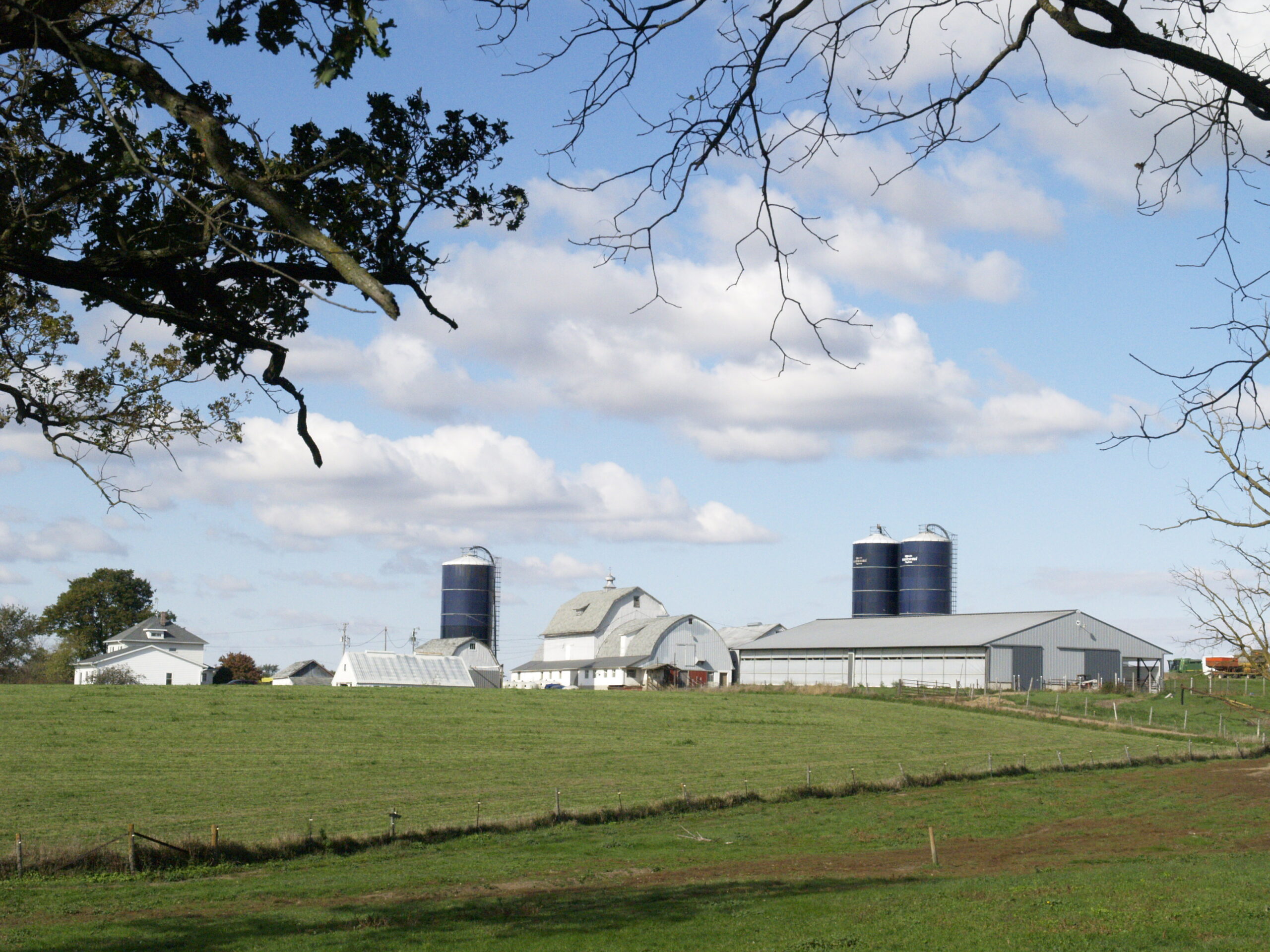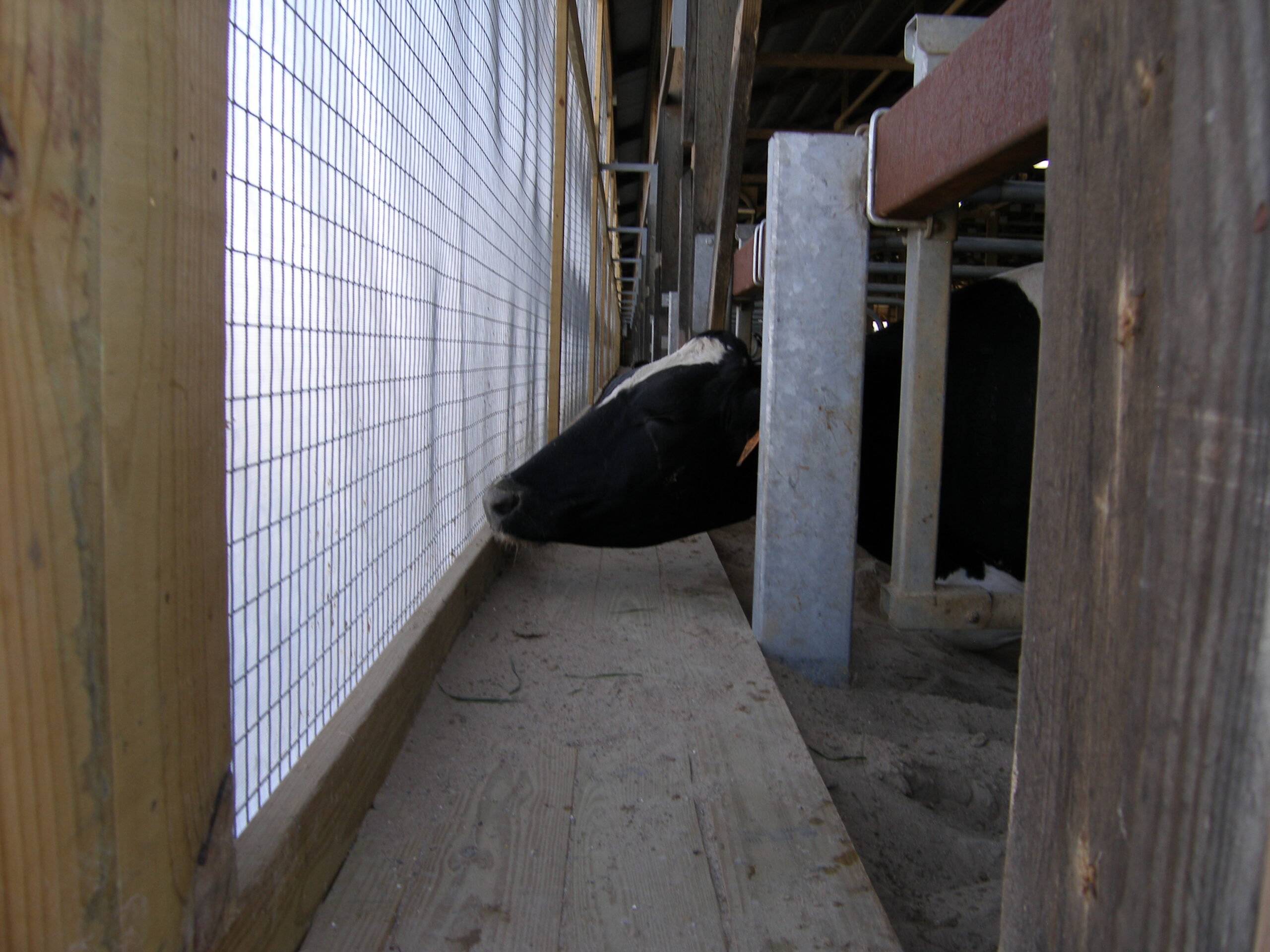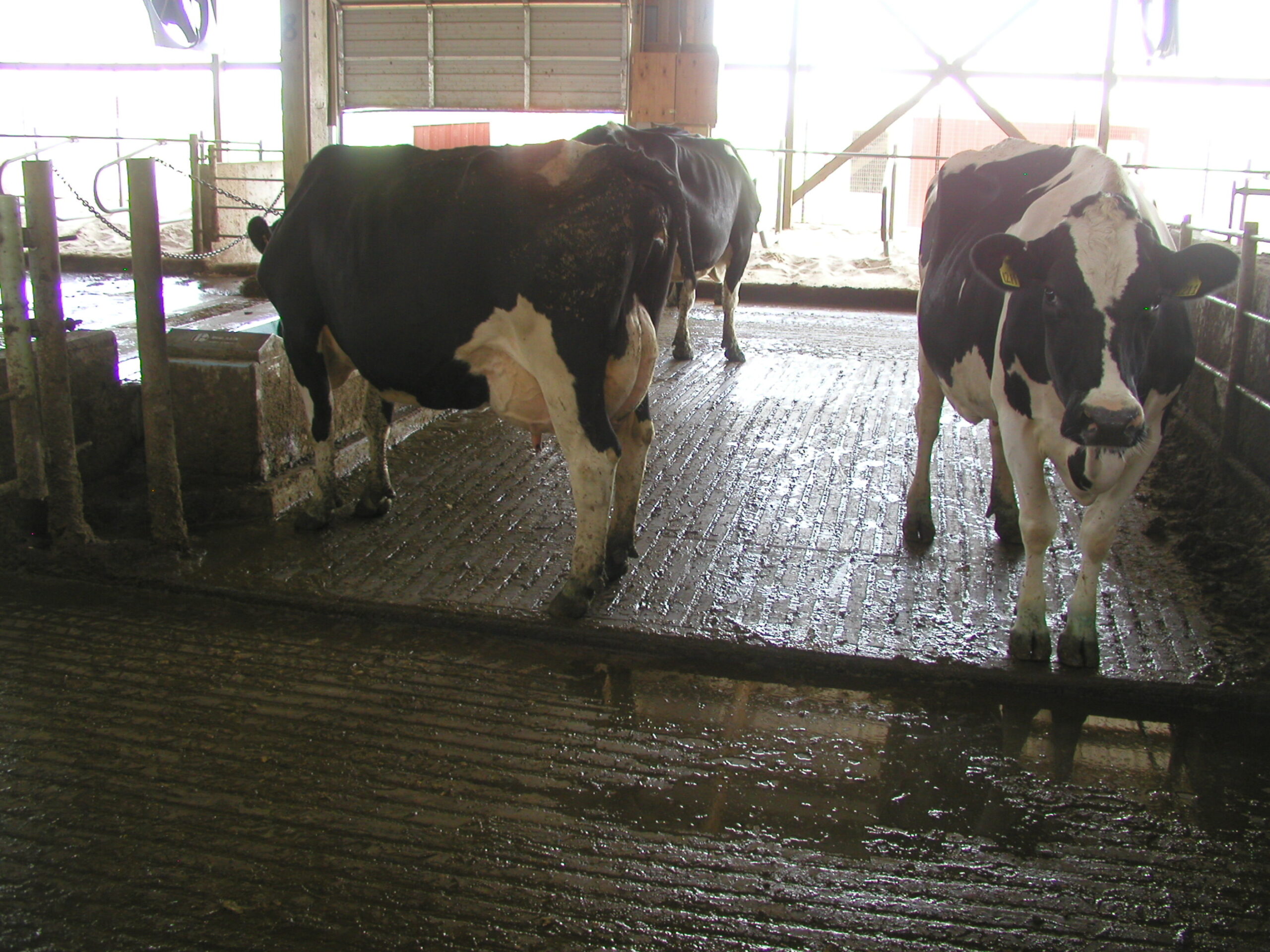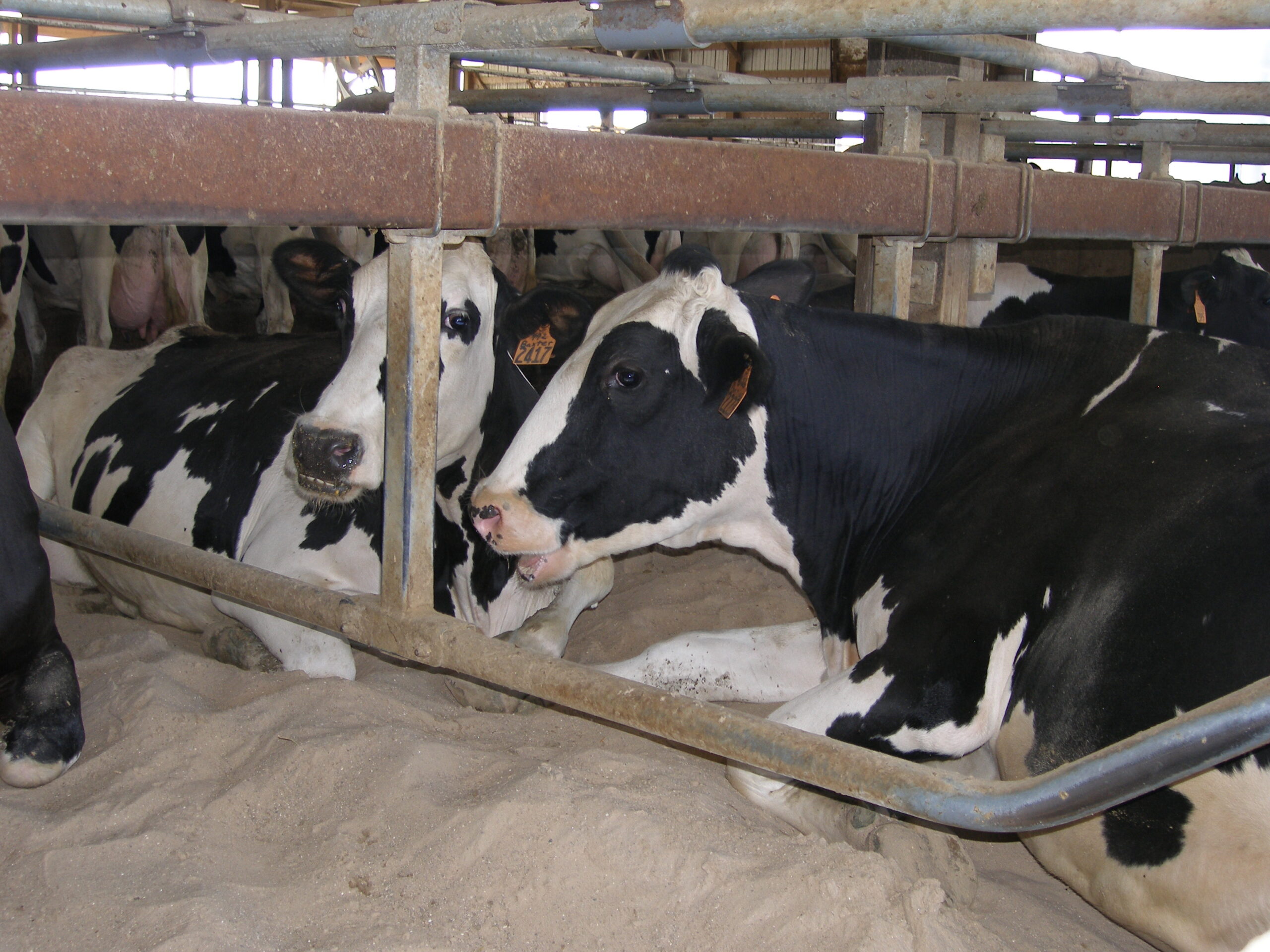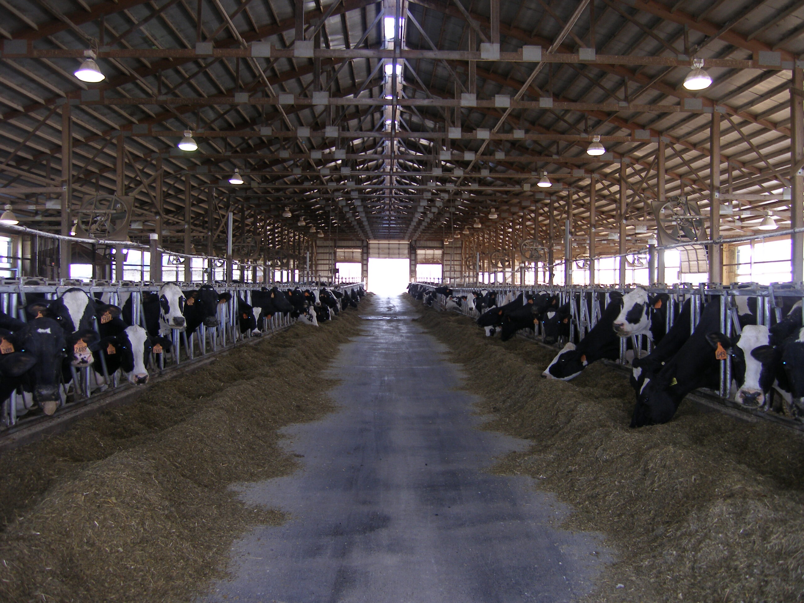 Expanded new transition cow barn housing sick cows, far dry cows and prefresh mature cows and heifers in separate groups and a hoof-trimming area. Design constrained by limited footprint but optimized for bunk access for prefresh groups. Just in time calving with a drovers lane connecting 2-row head the head layout, manure solid bedded freestall pens. 3-row far dry and sick pens.