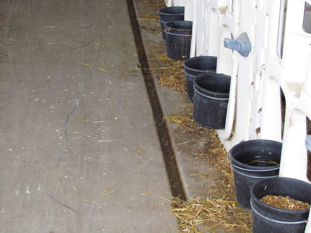- Plentiful, well-bedded resting space with uninhibited access to milk, starter grain, and water with a preference for no more than 20 calves per feeding group